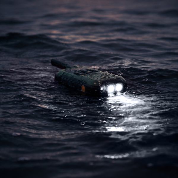 Il Dynascan F-15 è dotato di una torcia LED e di un flash LED integrati che si attivano automaticamente quando entra in contatto con l'acqua. È molto utile per i professionisti che lavorano di notte o per le escursioni notturne. È inoltre dotato di un pulsante di emergenza ben visibile sul lato sinistro che, in caso di allarme, attiva una chiamata in vivavoce e un allarme sonoro per informare il gruppo che ha bisogno di aiuto.